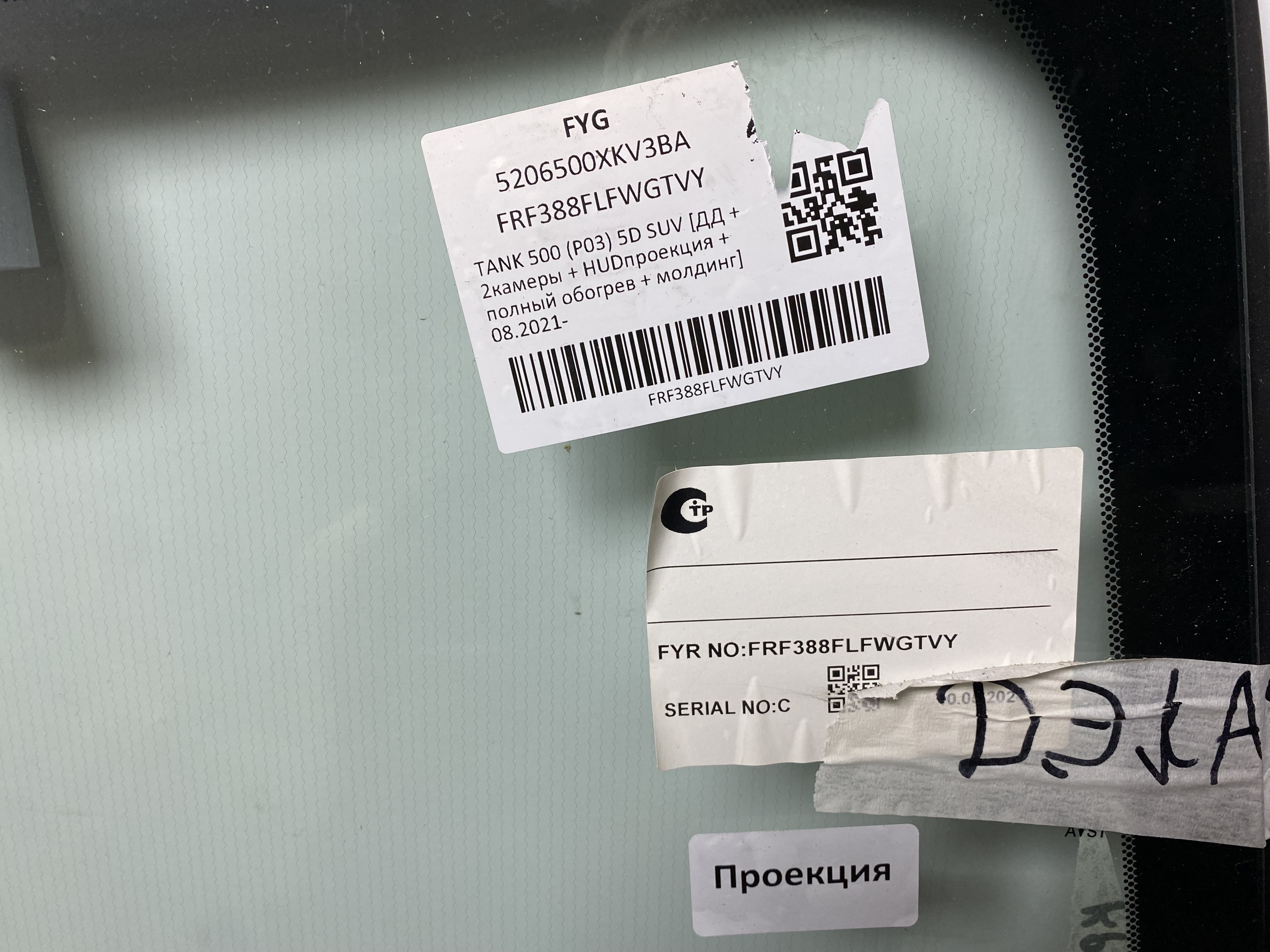 GREAT WALL TANK 500 2021- (P03) FYG [ДД+2камеры+HUD проекция+полный обогрев] 08.2021- Стекло лобовое, 5206500XKV3BA